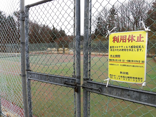 5月5日のこどもの日テニスコート無料開放は、テニスコート施設利用休止中の為中止となりました。ご予約いただきました方々には大変申し訳ありません。次回の無料開放は、県の記念日8月29日を予定しております。よろしくお願いいたします。お問い合せは、小泉潟公園管理事務所まで 018-873-5272